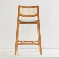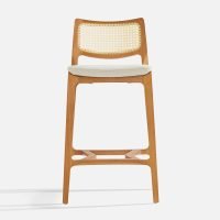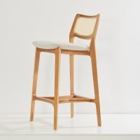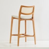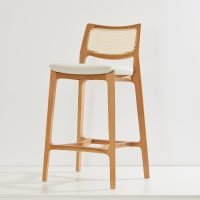 The Aurora Stool is meticulously sculpted from whole blocks of solid wood, using a multi-axis rotation technique. The backrest, with its striking curvature, is available in solid wood or cane, providing versatility and style. A perfectly balanced piece, resistant to time.